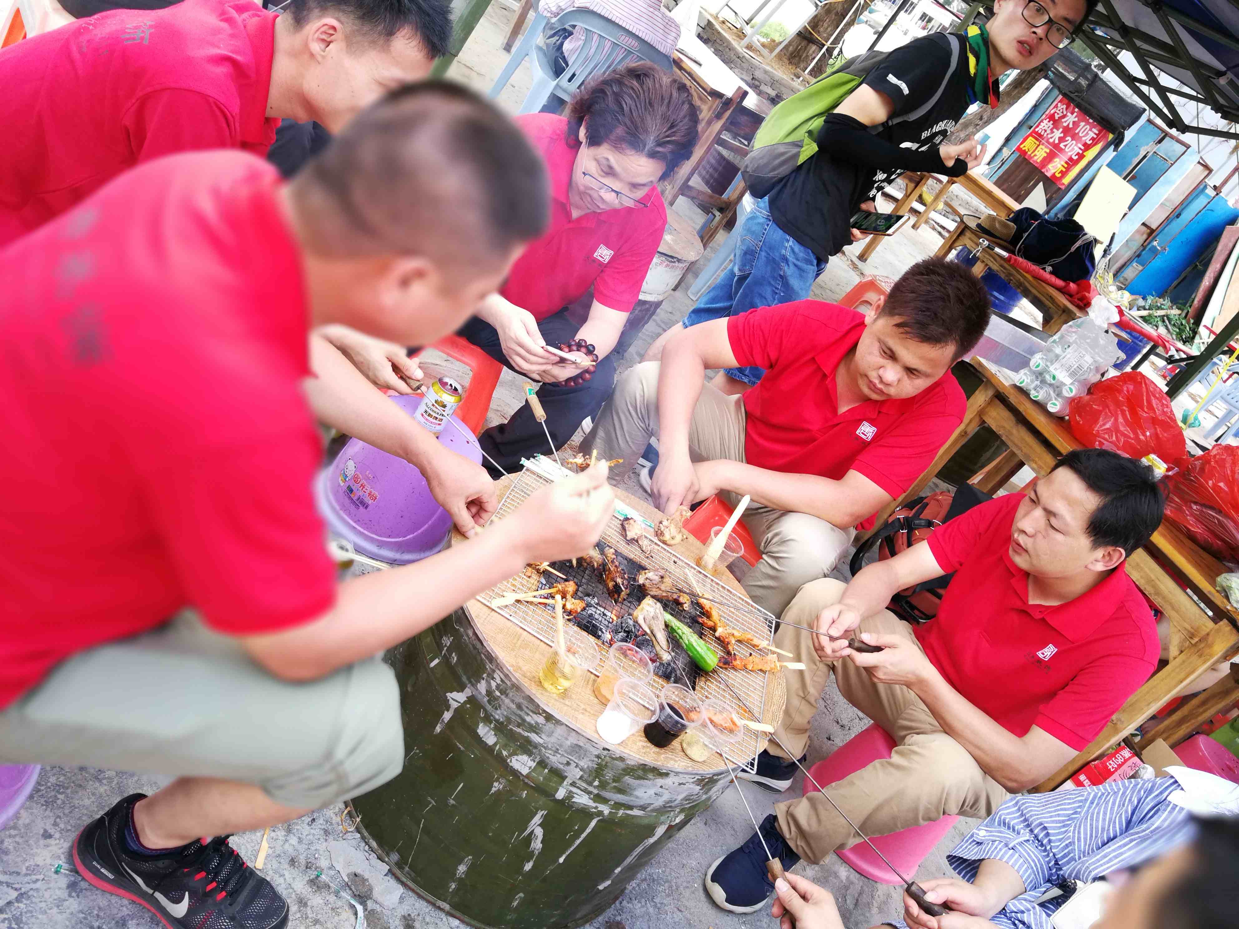 15:30开始了烧烤活动,按10人/组领取烧烤物资等等。