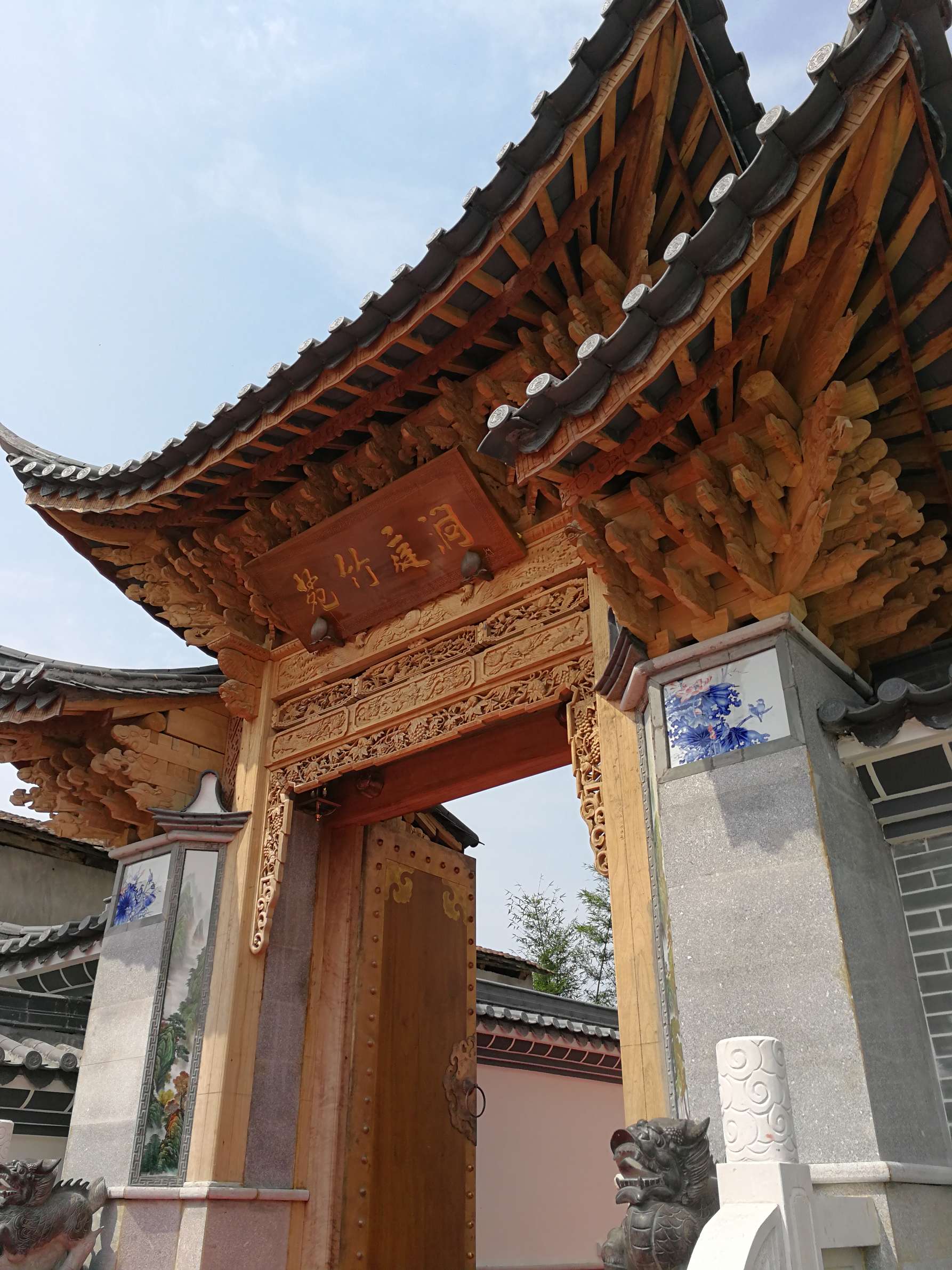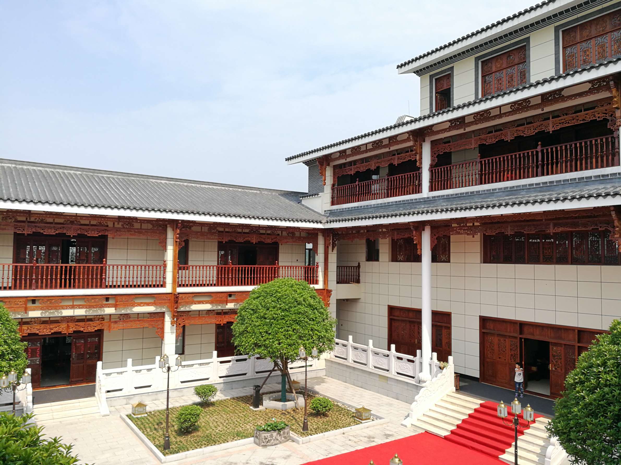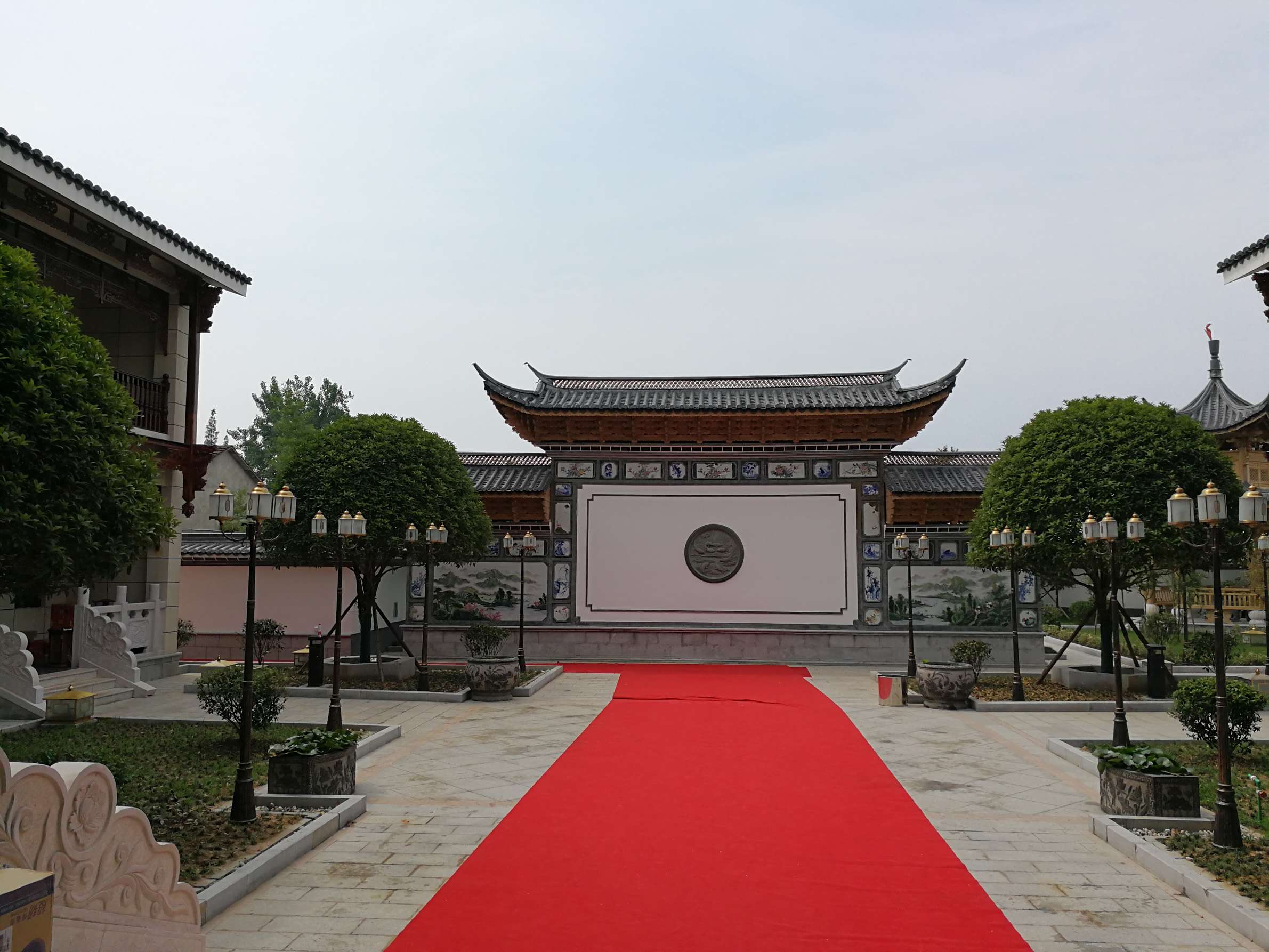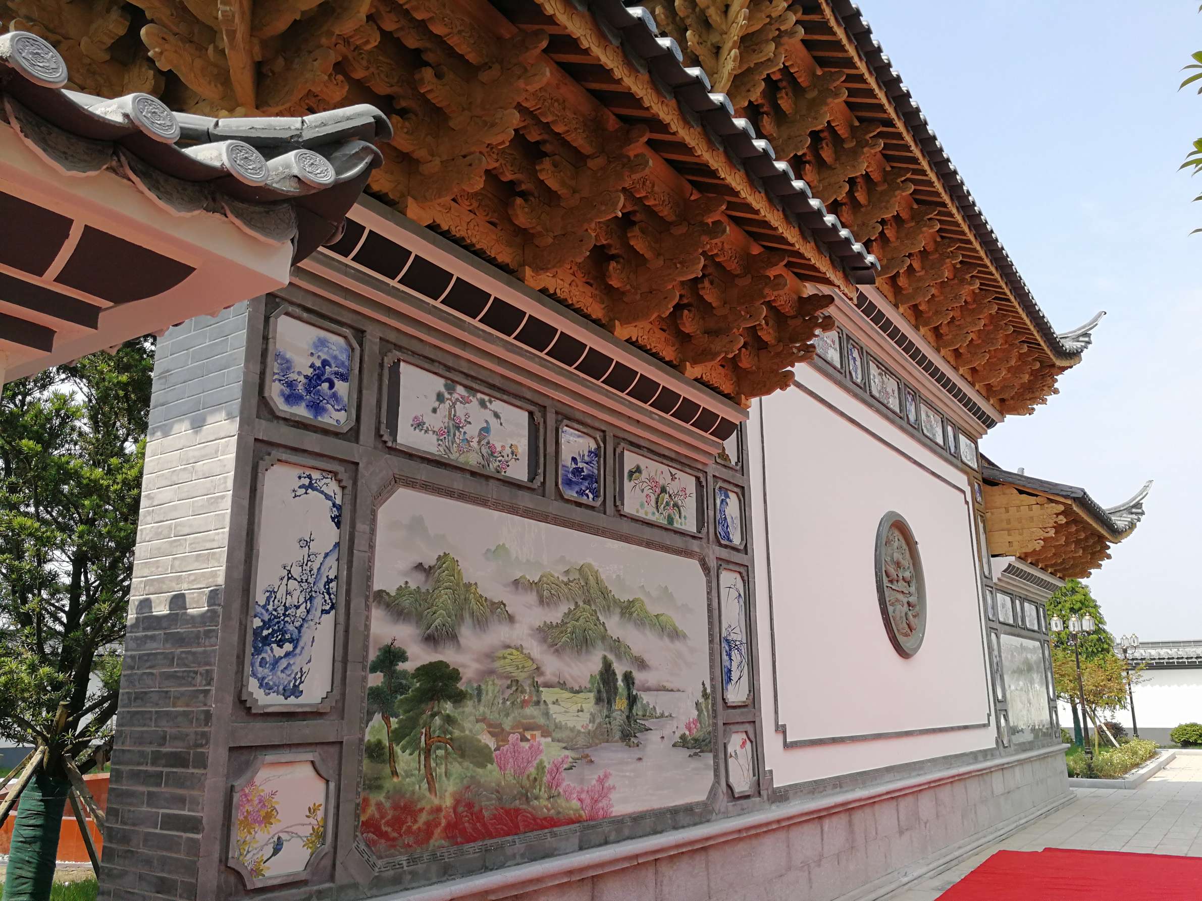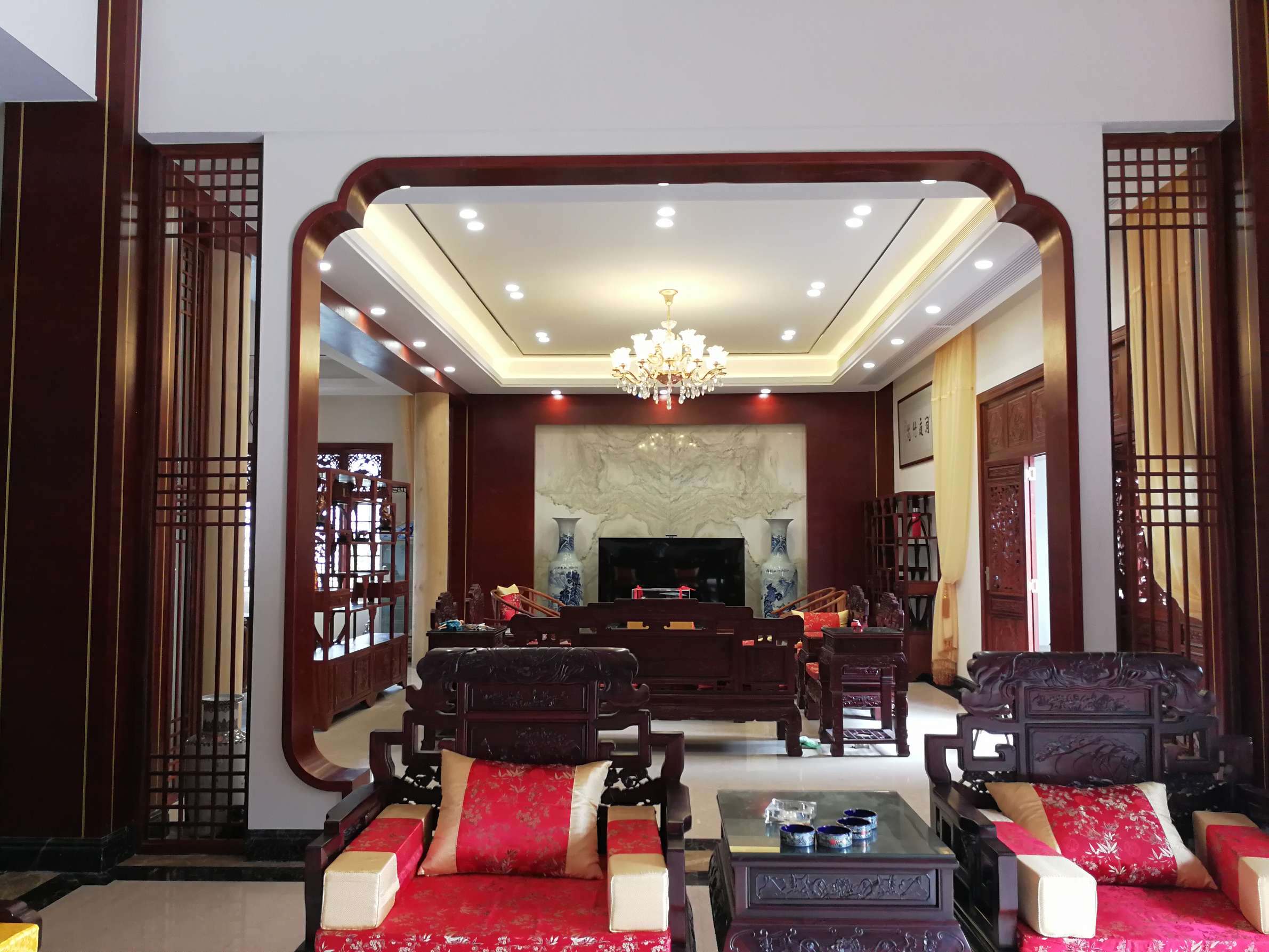 主要装饰材料:饰面板、仿古砖、花梨木、大理石、实木雕花、户外麻石