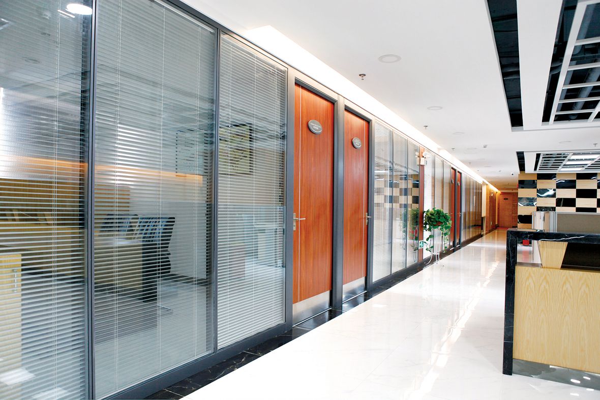 玻璃隔断墙的主要结构是由高强度铝合金(框架)和其他高分子材料组成的,完全满足防火、抗震、抗侧撞击、不同空气压等要求。
