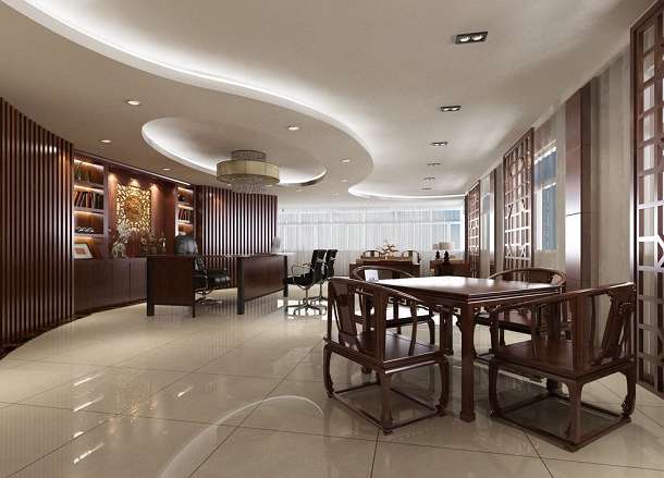 中式办公室装修融合了庄重与优雅双重气质。更多地利用了后现代手法,把传统的结构形式通过重新设计组合以另一种民族特色的标志符号出现在办公室装修设计中。
