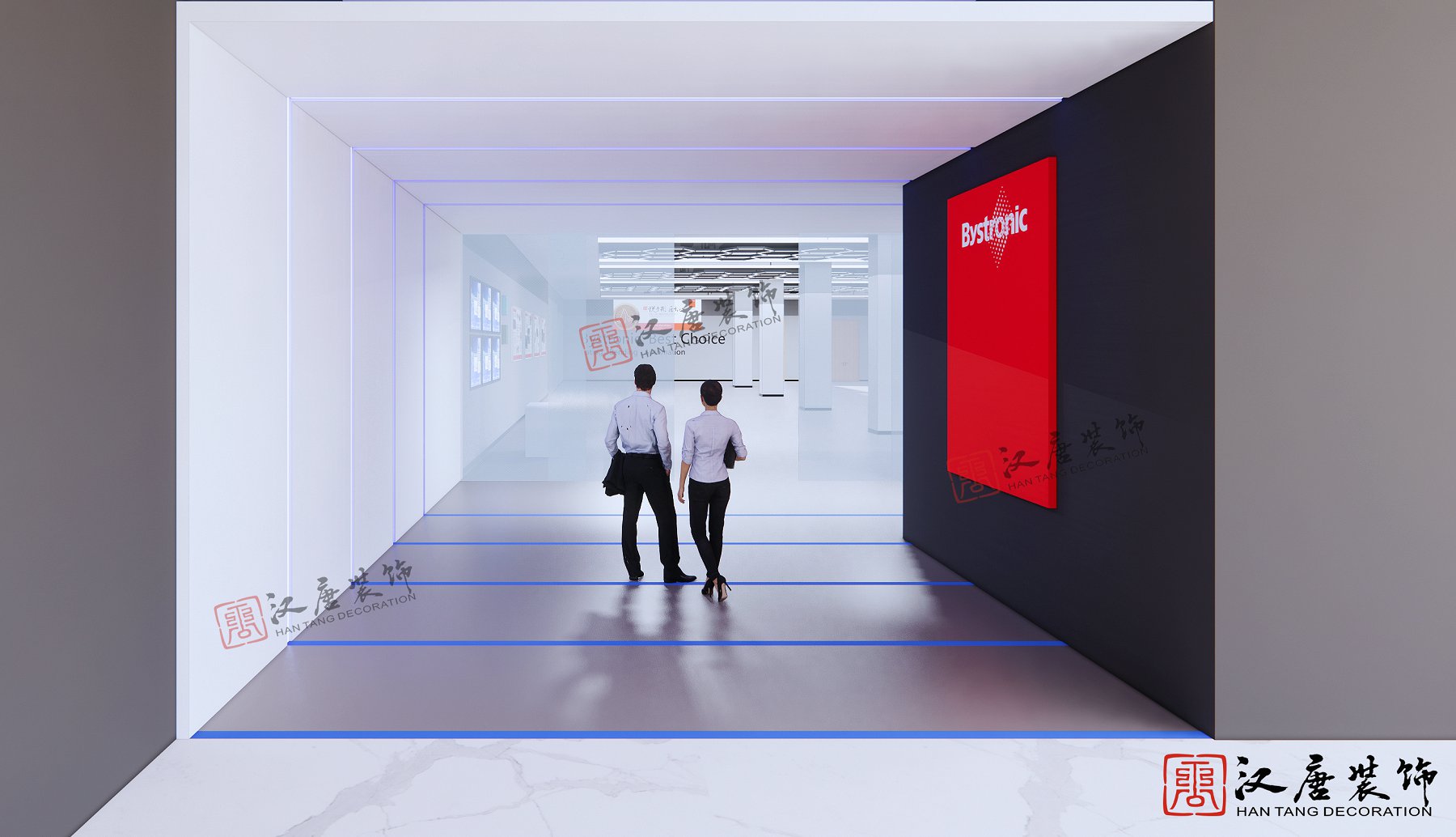 项目名称:深圳市百超迪能激光科技有限公司工业园改造设计工程项目地址:深圳市宝安区沙井街道坣岗社区中日龙路12号 项目总面积:园区总占地3.6万㎡,室内面积4万㎡,园林整体规划,外观升级设计说明:本方案的业态为激光科技类公司,为瑞士合资企业,甲方诉求需要设计国际化、现代简约、有科技感,根据企业色,外观主色调为深黑色,配色为红色、白色,稳重的同时又不显呆板,展现了企业的活力,展厅空间设计科技感,白色,灰色作为主色调,为企业增色,更好的展示好产品的优点,让企业更具竞争力。