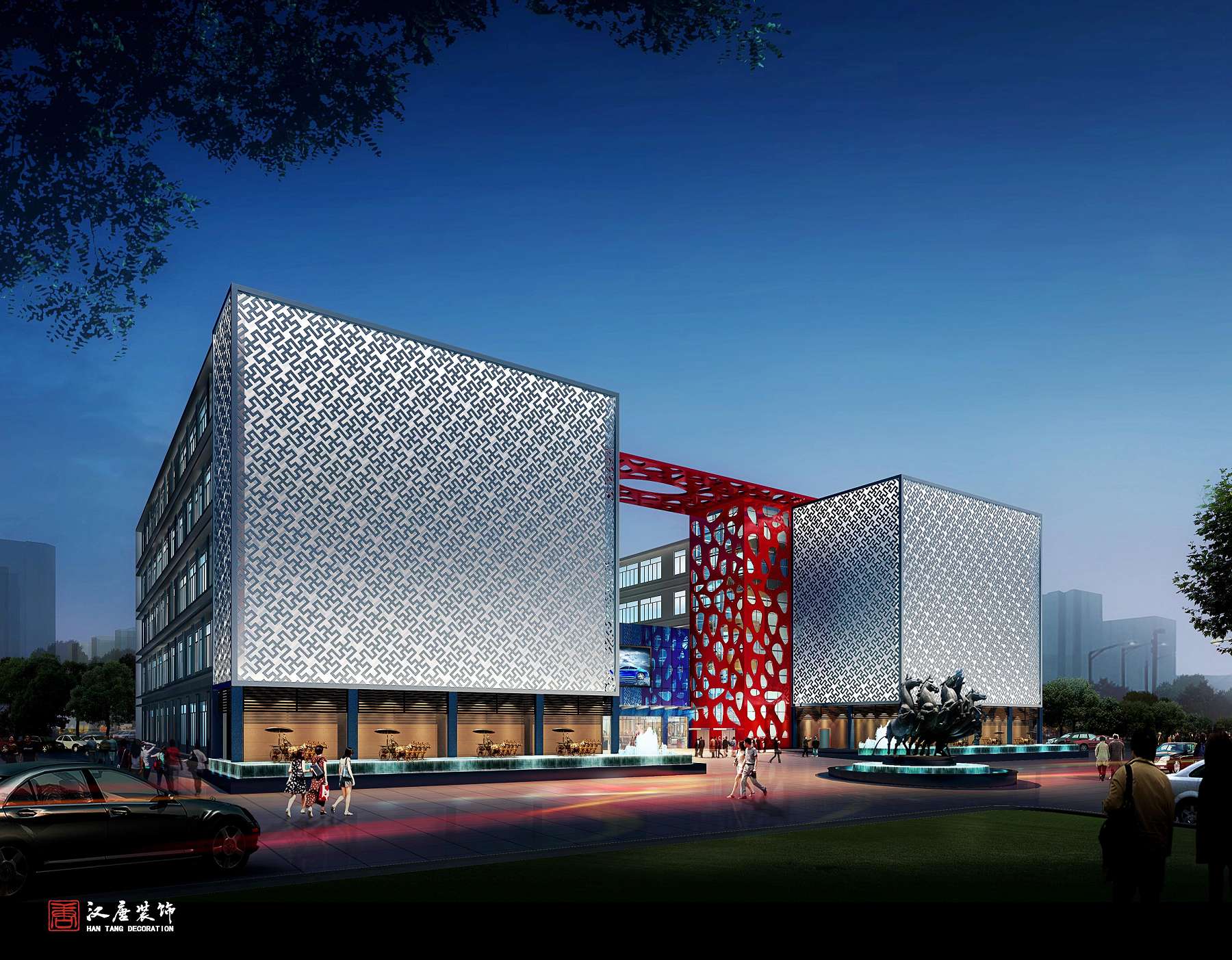 汽车品牌店有着相对固定的运营模式,那么对于此案设计而言,也就有着相对成型的规范与要求。而在此基础上,根据实际情况来进行空间功能的合理规划,光线朝向的实时分析以及悬挑空间的心理氛围的营造等等。