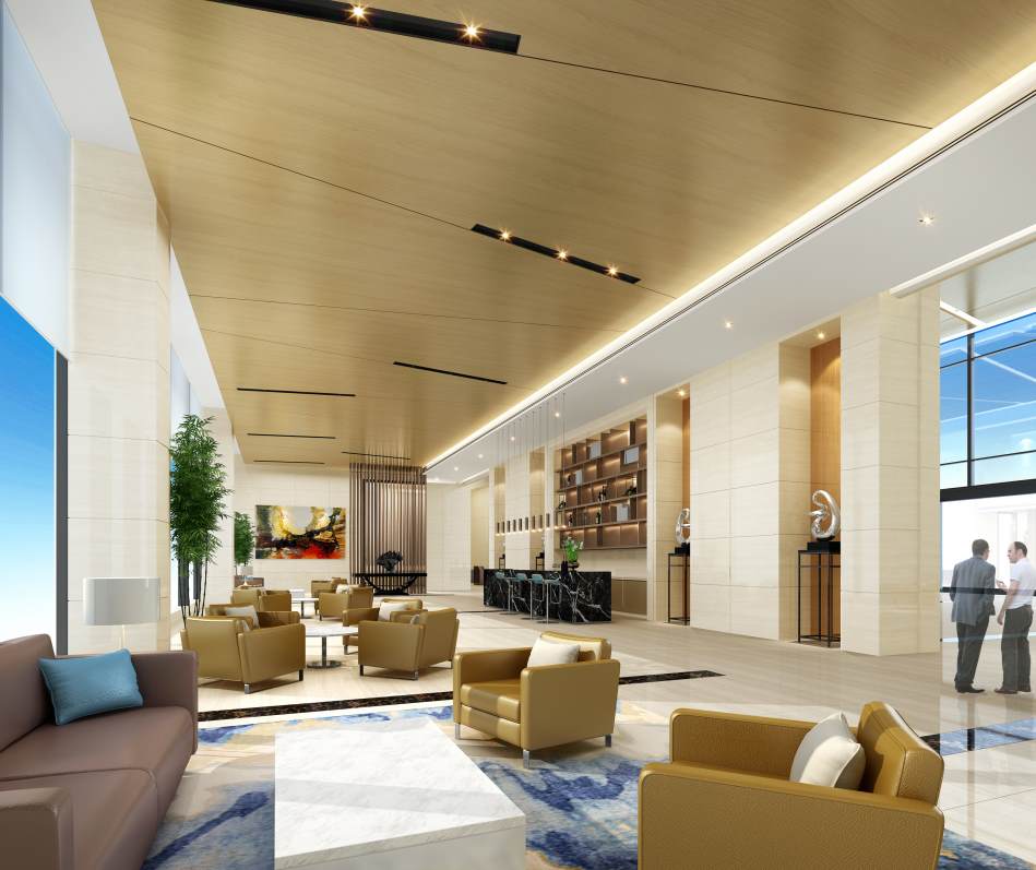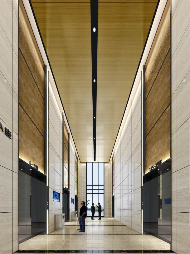 设计说明:邢台财富大厦项目是由河北乾康房地产开发有限公司投资兴建的集商务办公、商业、餐饮、休闲娱乐于一体的大型城市综合体。邢台财富大厦项目定位为甲级5A写字楼,建成后将成为邢台市地标工程。室内装饰风格以深圳京基100装饰风格为主,以浅色调为主,装饰手法庄重而不呆板、简约而不简单、中庸而不庸俗。设计从建筑的造型上提炼一些特征,形成建筑与室内的联系并做演化将建筑、艺术、环保有机结合。设计通过对建筑幕墙的横竖向线条进行演化,并运用到室内装饰上,且贯穿到不同的功能区域,这样自然而然地将建筑和室内空间联系在一起。由重复产生的韵律感和统一性,也是生成空间隐重大气的重要设计手法。